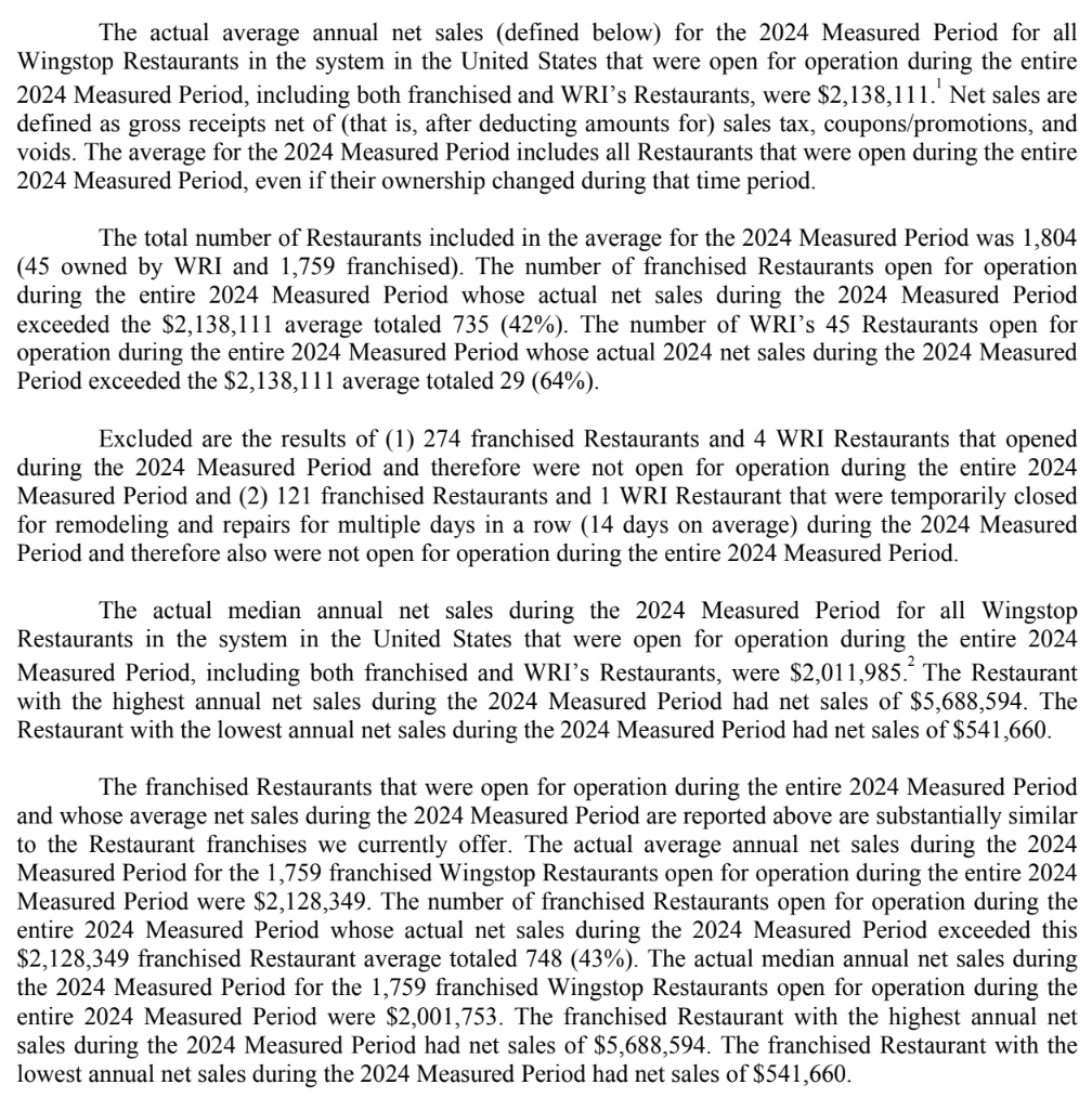 *Information below taken from the Wendy’s 2025 Franchise Disclosure Document – Item 19